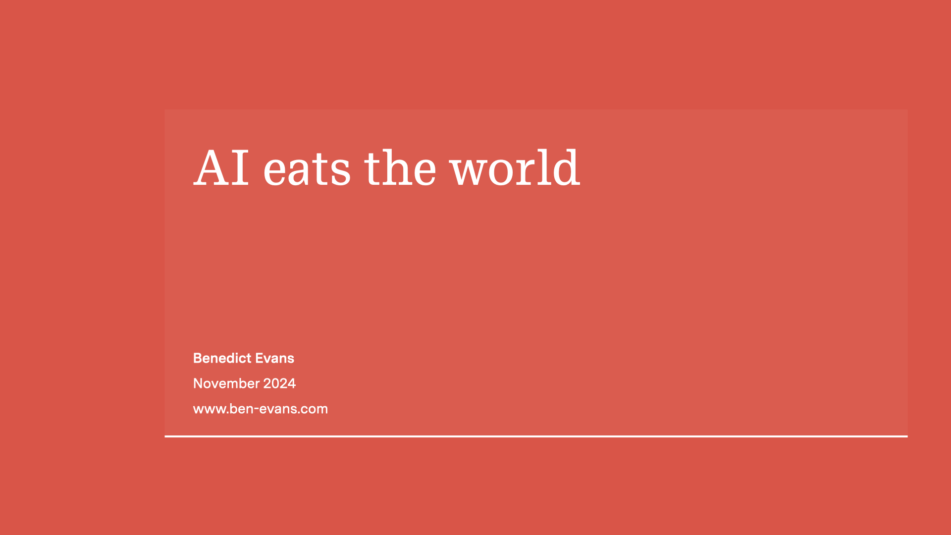 Twice a year, I produce a big presentation exploring macro and strategic trends in the tech industry. For Autumn 2025, ‘AI eats the world’.